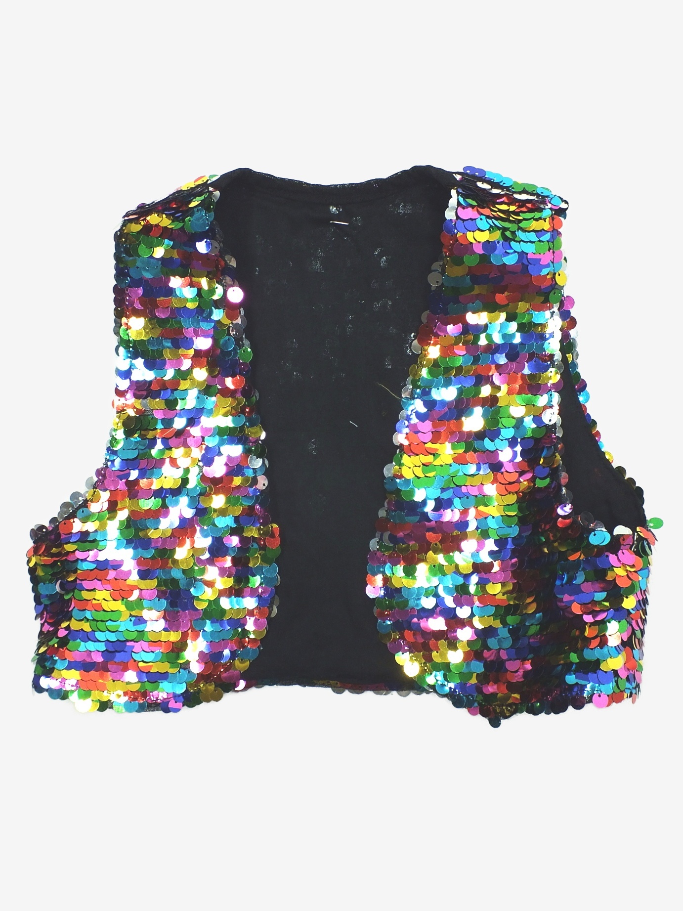 Domů Mikiny, svetry, vesty Vesty, pulovry Krátká flitrová vesta
